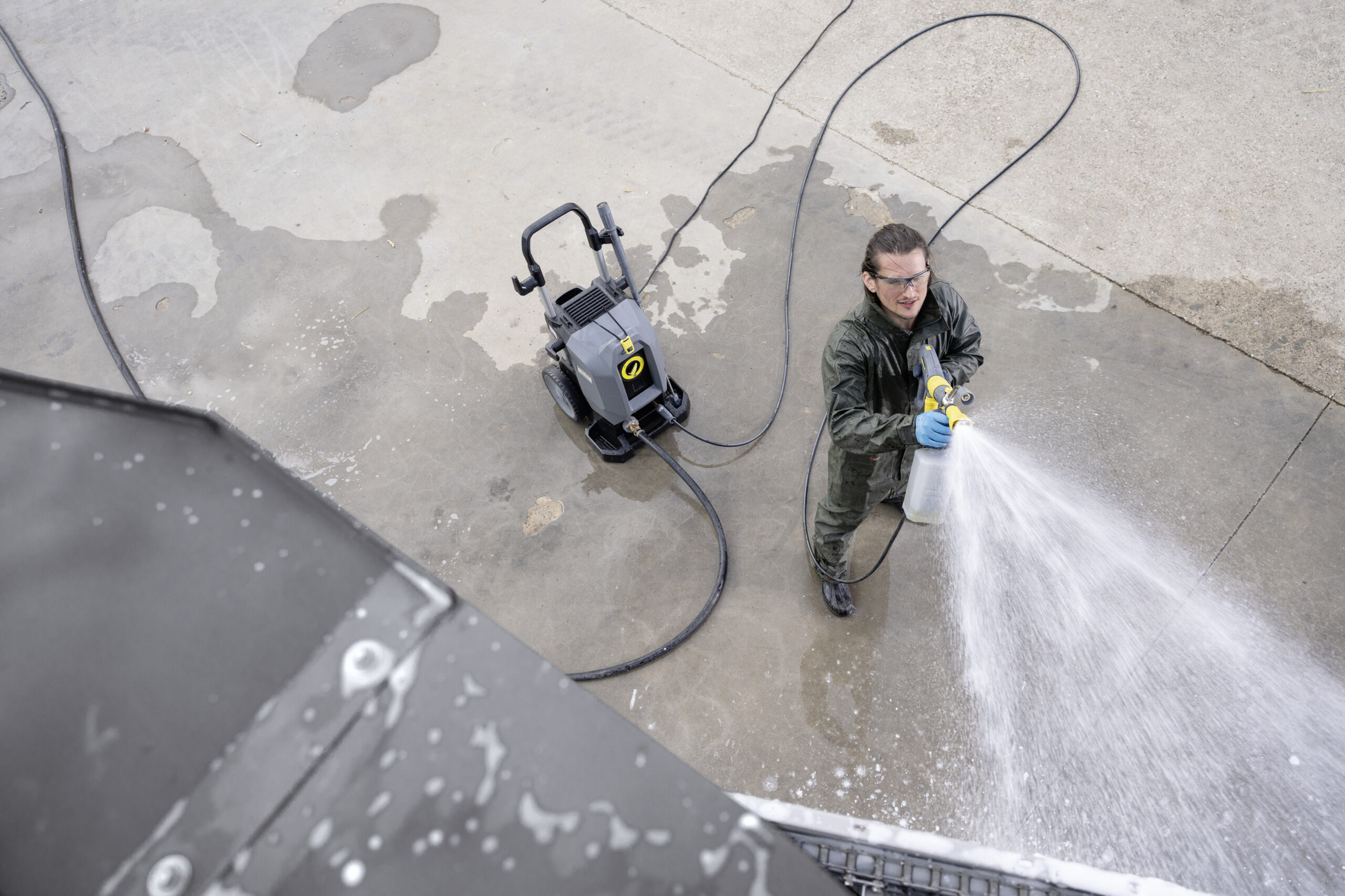 La limpiadora de alta presión con agua fría HD 10/25-4 S con accionamiento trifásico convence por su comodidad de uso y por su extraordinaria potencia de 250 bar con un volumen de caudal máximo de 1000 l/h. Gracias a su modo de construcción vertical, el equipo ocupa menos espacio que los equipos convencionales y es más maniobrable, especialmente en caso de obstáculos. También ayudan sus grandes ruedas con neumáticos de caucho que la hacen fácil de transportar incluso por terrenos impracticables. En el compartimento separado para boquillas se pueden guardar de forma segura los accesorios que no se utilicen en cada momento. Las nuevas innovaciones garantizan un trabajo sin cansancio y un montaje y desmontaje rápidos: Mientras que la pistola de alta presión EASY!Force aprovecha la fuerza de retroceso del chorro de alta presión para reducir a cero la fuerza de retención, los cierres rápidosEASY!Lock permiten un manejo cinco veces más rápido que las conexiones por rosca convencionales sin repercutir negativamente en la robustez y la larga vida útil. La 10/25-4 S ha sido concebida para el uso diario en condiciones difíciles. La culata de latón resistente al detergente y los émbolos de acero inoxidable con manguitos cerámicos garantizan una larga vida útil.
